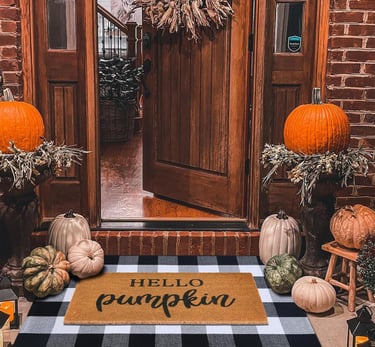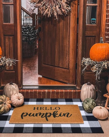 Welcome your guests with a this seasonal door mat and outdoor rug combo that will elevate your front porch.