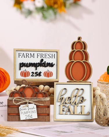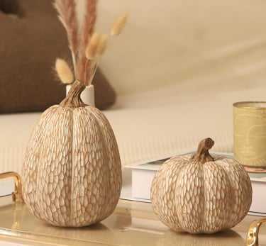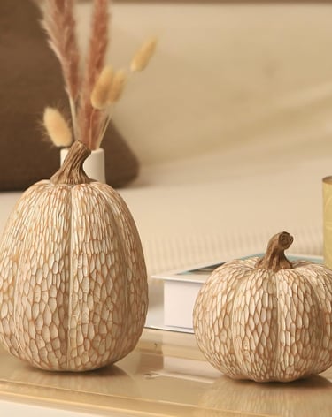 2-piece set of resin pumpkins that add a rustic autumn feel.