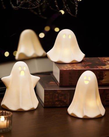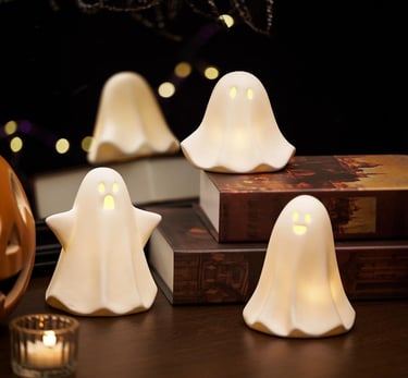 3-piece LED set of ceramic ghosts that will be the perfect addition to your mantle.