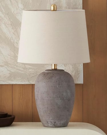 Rustic vintage table lamp with an earthy, natural aesthetic.